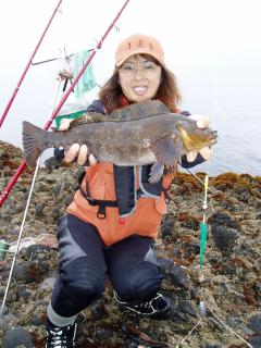 午前4時頃、良型のホッケのプチ入れ食いが1時間ほど続いた(^^)中りが落ち着いてきた時に43センチほどのアブラコをゲット!直ぐに30センチ級のカジカも来て喜んでいると続いて49.5センチの大型アブラコを釣っちゃった~♪♪♪