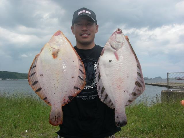 2008-06-16 (月) - 18:25 釣行メモ 釣行日 2008-06-14 場所 室蘭港 使用ホウムラ製品 えび粉塩イソメ ミサイル 桜塩イソメ(太虫) その他の使用製品 がまかつ カレイ三昧キャスターズAタイプ13号 魚種 カレイ クロガシラ狙いの釣行だったが、朝一竿先を揺らしたのは40アップのタカノハだった。 終了間際にようやくクロガシラも顔を見せた。 今年からホウムラの桜塩イソメとえび粉塩イソメをメインで使用しているが、締まり具合がかなり良く、太さも十分で大型クロガシラには効果があるように感じる。 釣り人 kamiya