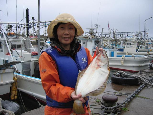 最初に大物をあげたのは津田裕子さん。ヒラメ釣り初挑戦の津田裕子さんは45cmオーバーを上げ「家族全員分のヒラメの刺身をまずはキープした」と言い、その後はよ余裕を持って釣りを続けていました。