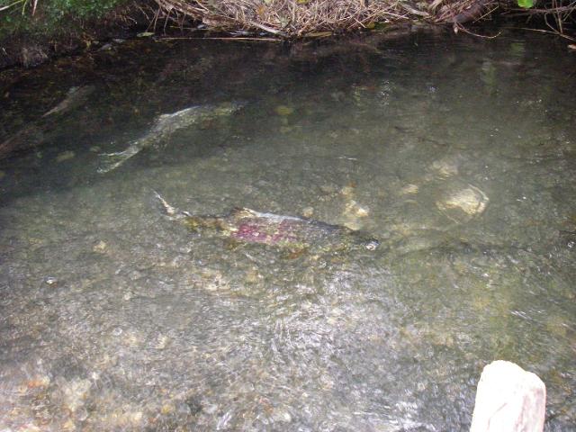 2008-09-15 (月) - 15:28 釣行メモ 釣行日 2008-09-14 場所 白老町アヨロ川上流 使用ホウムラ製品 イタドリ虫 15匹入 その他の使用製品 がまかつ ヤマメ仕掛6号 魚種 その他 虎杖浜と言ったら勿論鮭釣りが旬です。未体験の私、道具は一式持参したのですが、当然のことながら時既に遅しで、竿、竿、竿だらけ。あっさり諦め渓流釣り。以前から一度行ってみたかった場所で、国道36号線から車で5分。そこから歩いて30歩位の所で開始。いきなり遡上している鮭と遭遇。イタドリやイクラを餌におよそ2時間位でイワナ30匹、ヤマメの新子5匹の釣果で十分楽しむ事が出来ました。 釣り人 kumiko