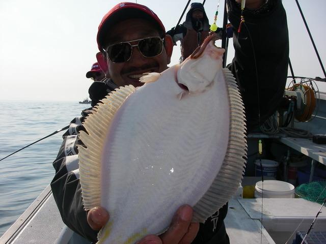 8字を過ぎた頃ようやく私にアタリがあり、45cm級が1枚、さらに続けて38cmが来た。今度は逆に畑山さんを煽り出すと畑山さんの秘技が炸裂!(この技は横にいた数人にしかわからないのでここでは伏せておきます)2枚目を追加。