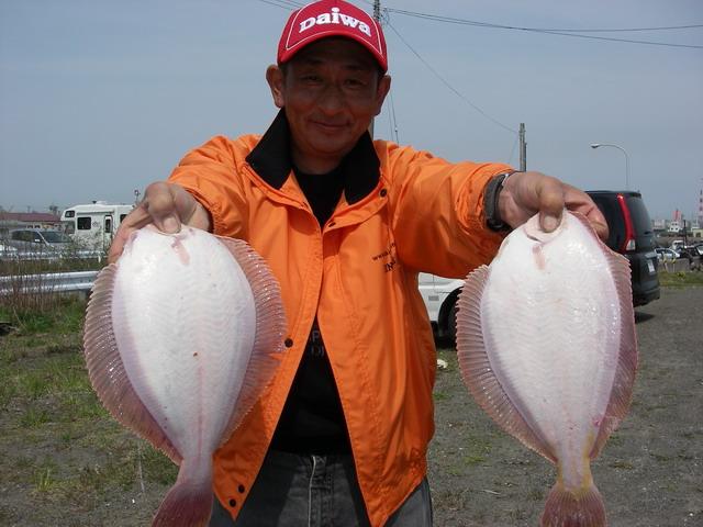 ポイント到着後、数分経った頃に畑山氏にヒット!40cm級のマガレイが上がり「早掛け畑山」の異名を持つ畑山氏に開始早々煽られる。
