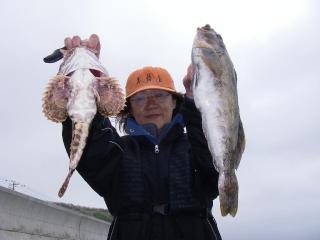 残りはあと3匹。明るくなって根掛かりに疲れたので、ネット無しの2本針の仕掛けを思いっきり遠投?(私なりの)すると1本の竿に40センチのアブラコ、もう1本の竿で30センチのカジカが釣れ、残りは1匹となりましたが、最後まで魚は付くものの根掛りが外せず、残念ながら9匹で終了しました。