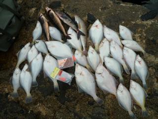 2009-06-12 (金) - 15:42 釣行メモ 釣行日 2009-05-31 場所 島牧:江ノ島海岸左磯 使用ホウムラ製品 えび粉塩イソメ 桜塩イソメ(太虫) カラーシンカー 魚種 カレイ 釣行種別 磯情報 5月最後の日曜日。 31日(日)は朝から小雨が降り続いたが、休みの雨を気にしていたら釣りはできん! 釣友の森永君とリュックを担ぎ岬の先まで向かった。 風が少しあり雨が降っているものの、釣りは可能で2人並んで遠投釣り開始。 開始早々良型のマガレイが釣れ、順調な滑り出しだ。 ここは砂地が遠く、遠投が有利なポイントで、気を緩めると途中の根に引っかかってしまう。 良型マガレイダブルの重みを高速巻きで行うと、へとへとになる。 程々の量を確保し、雨もやまないので10時にて終了。 釣り人 yuusaku