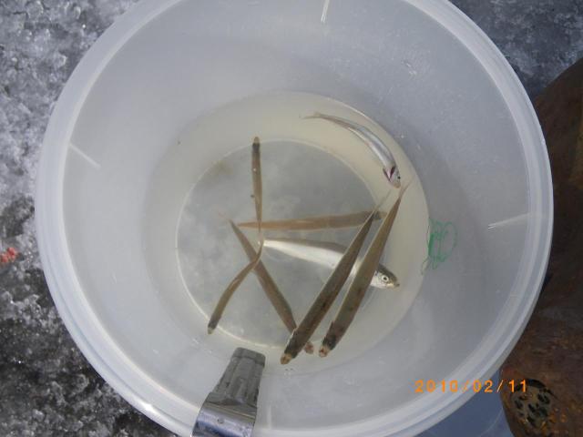 この日は、どの人も爆釣で、凄い人で、300匹前後釣っていた絶好調のご夫婦がいました。早速私達も竿を出してチカ釣り開始!