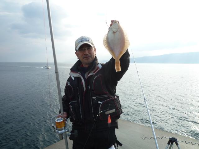 釣り仲に場所を譲っていただいたので、ポイント(場所)は公表できませんが、後志管内の漁港です。 ・ 例年なら、3月中旬から徐々に釣果が上がりだすポイントなのだが、ここは他の場所同様、3週間以上遅れていて、毎週のように釣り仲が通っていたのだが、一桁から十数匹前後と例年の半分以下が続いていた。 しかし、4月20日を過ぎたアタリから徐々に釣果が上がり始め、前日にはマガレイの30cmオーバーが数多く出て本調子に突入した模様。 早速。釣り仲に連絡を入れると、『入れるから来い』とのこと。 ・ 4月25日(日)。早朝4時。投げ竿の準備を開始。 ポイントの左角に入れていただき、中投げと遠投で釣りを開始する準備を始めた。 ・ 中投げ竿は、オリジナル胴突き仕掛け2本針にネットを付け、オモリは『カラーシンカー30号:イエロー』。 針につける餌は、『えび粉イソメ』を使用し、ネットには『強力かれい』を入れ、船道を狙った。 遠投竿は、オリジナル遊動仕掛け2本針に、『カラーシンカー30号:オレンジ』を付け、餌は、『桜イソメ』を使用し、追い風に乗り大遠投。 ・ 最初にアタリが来たのは船道を狙った中投げ竿だ。 小刻みに揺れる竿先に集中し、2度目のアタリで竿を立て、合わせると確信的な重みが伝わってきた。 まずは、ダブルと幸先がいい出だしとなった。 ・ さらに右隣は、釣り仲の坂内さんが入り、坂内さんはホッケのサビキ釣りも行っていた。 ・ 25日は、今までとは釣れ方に大きく違いが見られ、アタリの出る間隔が短く、ダブルで釣れるのも珍しくはなかった。 他の釣り人は30cmオーバーが釣れる等し、活気付いたが、私たち3人には30cmオーバーが釣れませんでした。 しかし釣果は、マガレイが1人25匹から30匹前後とまずまずで、坂内さんはサビキ釣りでホッケのほか、良型のアブラコまで釣り上げ、満足のいく釣行となりました。 ・ 餌に『えび粉のイソメ』を使用し、オモリはミサイルオモリで良型もマガレイをゲットし、彼も、今季初のカレイの大量を満喫。 坂内さんは、カレイ仕掛けにロケットかごを装着しロケットかごには『ゴロの海』を絞りこんで釣果を上げていた。 また、坂内さんがホッケのサビキ釣りで使用していたマキエサは『ビッグキャッチ』とオキアミブロックを2:1で配合したものを使用していた。
