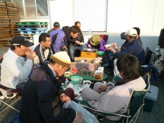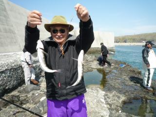 ゴールデンウィーク、釣り仲達と久しぶりの再会。 巨匠の川端氏、岐阜から来た水野氏の他、坂内氏、水間氏。 皆さんと元気に再会です。 ・ 釣り場所は公表出来ませんが、漁港です。 ・ 【第1日目】写真1,2,3 4時起床。準備を整えた人からキャストを開始。 全員、えび粉の塩イソメ。 朝から快調に釣れ始め、終了までに各自それぞれ30枚から50枚。 ・ 岐阜から来ていた水野さんは、オリジナル仕掛けに、カラーシンカーと、えび粉のイソメで良型をダブルで上げるなどし、北海道のマガレイ釣りを満喫。 ・ 明日は、釣り仲が更に増え、10人以上でわいわい楽しくやりますよ~~ ・ ・ 【第2日目】写真4~13 ・ 今日は、前日の、川端氏、水間氏、坂内氏、私の他に、高橋氏、植田氏、近藤氏、林崎氏、他3名が加わり、10名以上での大所帯で釣りを開始。 それぞれ、思い思いのポイントへ投げ入れ、順調に枚数を重ねていった。 ・ 私は、がまかつの:カレイ三昧キャスターズAタイプ仕掛けと、オリジナル仕掛けの併用で、えさは『えび粉塩イソメ』を使い、オモリは『カラーシンカー:イエロー30号』でチャレンジ。 ・ 各自、型物を含め20枚から50枚とまずまずの釣果。 私は良型のクロガシラが釣れましたが、40cmのマガレイを釣り上げる人も出て、大いに盛り上がりました。 ・ 最後の写真は、釣り終了後の宴会風景です。 ・ 釣り仲は大勢いると楽しいですよ! ・ ・ 【第3日目】写真14~20 ・ 本日は二手に分かれて釣りをすることに。 水野氏と、木村氏はサクラマスを狙いに。 私の他、10人は今日もカレイ釣り。 ・ 朝から強い風が吹き、釣りづらく風上方面は釣果が上がらなかったが、風下方面に投げていた人達は皆順調? 私はネット付きオリジナル仕掛けに、『強力カレイ』を入れ強風に耐えキャストをしていたが、中型のカレイをキャッチしたところで、中断、風下へ逃げていきました。 遠投も中投げもコンスタントに上がったのだが、気象条件変更(さらに強風)により、10時に終了。 ・ 釣り仲10人ともまずまずか? ・ ・ サクラマス組達は、サクラマスを1本と、アメマスを1本上げて上機嫌で帰ってきました。 ・ ・ 【第4日目】写真21~34 本日も数人の入れ代わりがありましたが、7人でカレイ釣りからスタート。 マス釣りに向かったのは二人。 ・ カレイ釣り組は弱い風の中、順調に数、型物をそろえ、すべり出し好調。 私も、オリジナル仕掛けに『桜イソメ』を付けオモリは『カラーシンカー:オレンジ30号』で順調な滑り出し。 全員がダブル、トリプルなどで型物と枚数を増やし大漁、大漁。 ・ マス組の方は・・・・・ダメだったらしい? ・ その後全員合流し、さらに人数が増し11人で島牧の港でホッケ釣り。 午後からのホッケ釣りだったが、マキエを撒くと5分も経たない内に入れ食いタイム突入。 マキエは、2種類を用意。 片方は『大漁ホッケ』1袋に、オキアミブロックを1個の割合で混ぜ、硬さ調整は『パワーボトル:オキアミ』を3分の2を使用した物。 もう一方は、『ザ・ホッケ』1袋にオキアミブロック1個の割合で混ぜ海水を使用した。しかし、海水を入れすぎたため、さらに『ビッグキャッチ』混ぜ入れ調節した物を使用した。 ・ 浮き釣りの針に付けたエサは、9割が『ホッケの喰わせ塩マグロ』残りがオキアミでした。 ・ 5本の竿を交代で使用したが、2時間足らずで、80匹以上を釣りあけたので、終了とした。 ・ ・ 最後の写真は皆で手分けしながらさばいた物、 釣る人、ホッケをさばく人、開く人、洗う人、干す人・・・・・ 役割分担をして、きれいに出来上がったホッケは、皆に平等に配られました。 ・ ・ 【第5日目】写真35~42 ゴールデンウィークフィッシング:最終日の五日目も、快調に釣れ始め、巨匠:川端氏が本領を発揮し、全員で200枚以上の好釣課で締めくくり。 ・ ・ 本日も、二手に分かれて、GWフィッシング。 一組目3人は、サクラマスへ。 二組目7人(川端氏、坂本氏、下国氏、植田氏、坂内氏、落合氏、私)はカレイ釣りへ。 ・ ・ 本日の巨匠、川端氏は気合いの入れ方が半端ではなかった。 朝一から竿先を見る目が違い、スタートダッシュ!! 最終日に合流した、坂本氏も、下国氏も同じく快調なスタートを切った。 私も川端氏の隣に入り、最終日と言うこともあり、数をそろえようと力が入った。 ・ エサは『えび粉イソメ』と『桜イソメ』。 両方のエサは塩で〆た後、充分に塩を払い落とし、えび粉の入った秘伝の粉で特殊製法をしているため、長持ちが効く。 出発をしてから、5日経っても、冷蔵されていれば何も問題なく使用できる。 ・ ・ オリジナル遠投仕掛けに『カラーシンカー:オレンジ30号』と『桜イソメ』を付け、ピンポイントへ!! ダブルなどで釣れてくるマガレイはどんどん釣れ始め、見る見るうちにご覧の通りに。 『えび粉イソメ』と『桜イソメ』、『カラーシンカー:オレンジ』を囲んだハート型のカレイ達は総数200枚以上。 1日~5日までに釣れたカレイはいったい何枚あったのか? ざっと