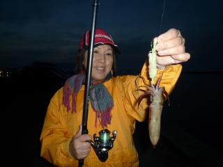 2m~5m程の距離に投げ入れられたテーラー仕掛けは明るい内からアタリがあり、まずは橋本さんがヤリイカをゲット。続いて古谷さん、松原さん、水木さん、渡邊さん・・・・・とヒットが続き、