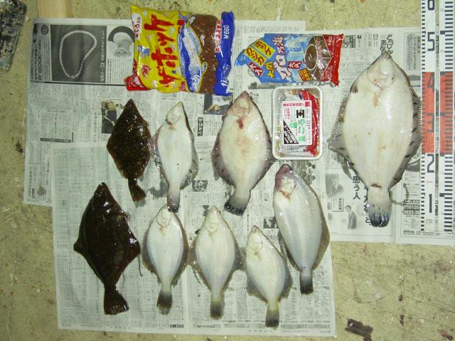 翌朝AM3:30スタート前日の撒き餌の効果か一投めからあたり(いしもちカレイ39センチ)その後2時間ほど