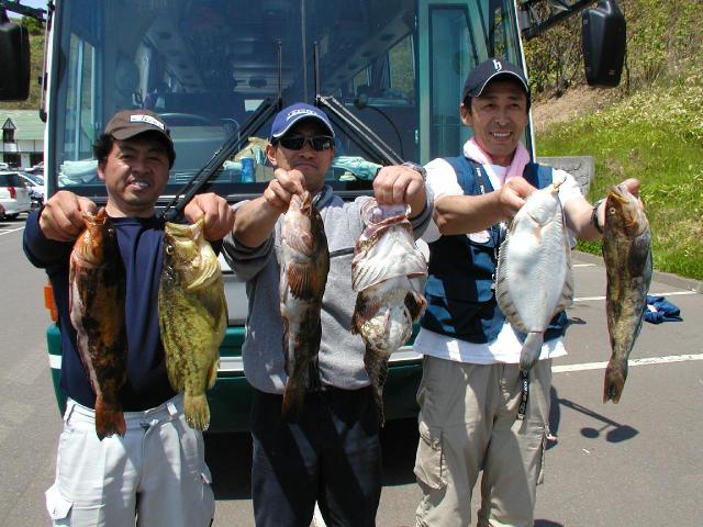 夜、波が全く無し。そして当たりもなし。朝方白々と明ける間際波が出始め、少しずつ当たりが出始め、何とか40cmのシマゾイが釣れた。竿上げ間際までに何とか5匹揃えるも、アブラコの良方が釣れずぎりぎりまで粘ると何とか42cm弱が上がり、2位に入ることができた。