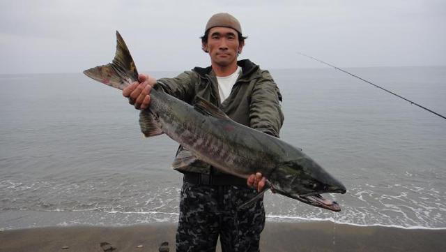 サケ釣りは、いざこざが絶えないとよく言いますが、右の方に声を掛け、左の方にも声を掛け、声を掛けられた方も快く協力し、お互いにタモ入れを手伝い、釣果を誉め合い、楽しい釣りをしませんか。