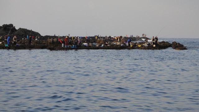 周辺は、釣り場も広く砂政泊の平盤(大きい地図写真0番、1番)は100人以上が竿を出せるポイントとなっている。