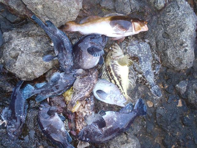 マゾイ(約38cm以下×10)、シマゾイ(2)、ホッケ(6)、カジカ(1)、クロガシラ(約37cm×1)、ハチガラ(5)、アブラコ(46cm以下×4)、ガヤ(6)