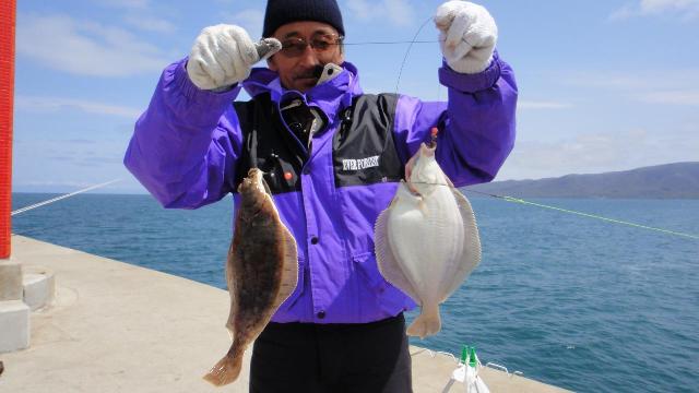 すると一転、カレイの活性が高まったのか、2人の竿にカレイが掛かり始め、爆釣とは行かないが、良型を含め釣れる頻度がペースアップ!