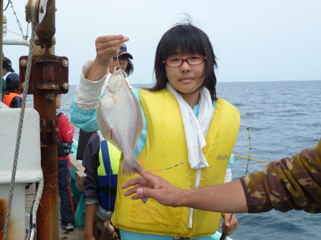 風が少し吹いていましたが、釣りには影響なく石狩新港沖20~21mのポイントでカレイ釣りを体験、船縁で小さな子供がロッドをしならせながらリールを巻く姿は、「絶対に釣ってやる」と言う賢明さが伝わって来て凛々しさも感じられます。全員が船釣りを体験し親子でマガレイ、ソウハチカレイなど20~50枚程度の釣果があり、満足して頂ける教室だったと思われます。