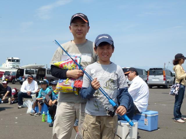 2位は28.5㎝のマガレイを釣った小川正純さん、凌くん(12才)親子