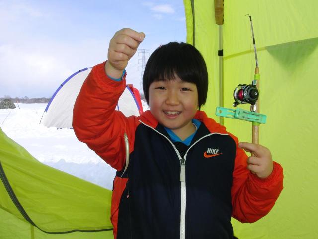 ワカサギ釣り初めての真矢君も目標の10匹を直ぐに越え、3時間ほどで20匹の釣果に大満足だった♪