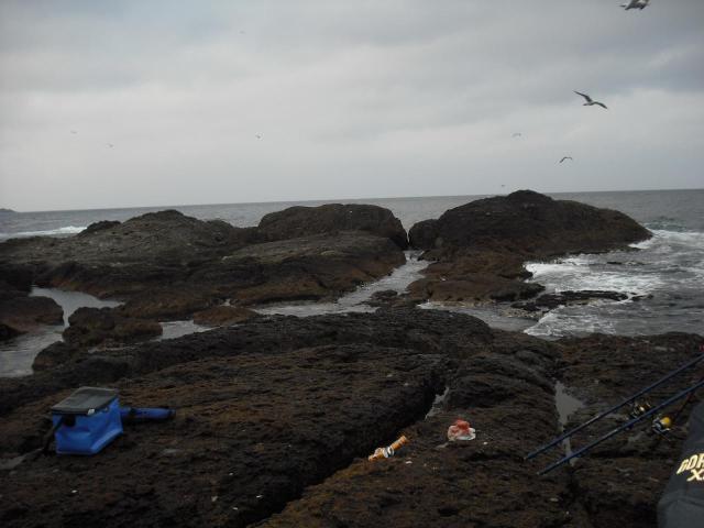 私は右端に三脚を立て、2本の竿を足下にちょい投げ