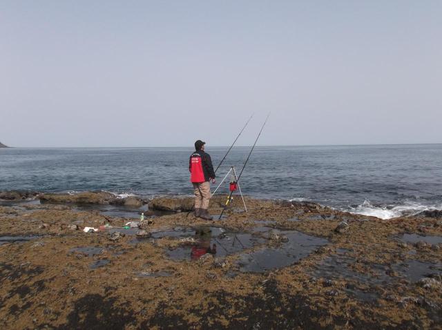 左右の先端部にはサクラ狙いのルアーマン達が釣をしている。