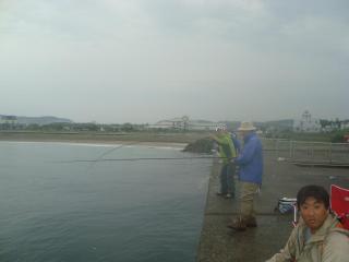 朝3時前に 堤防に ・・・。天気が悪い!!雨模様、風強し、波も多少・・・なお且つ暑い!!