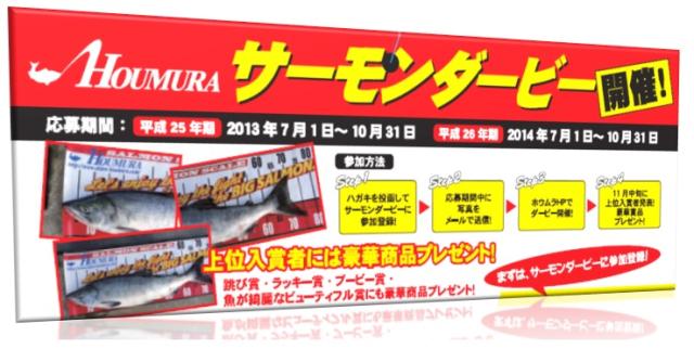 ホウムラでは、サーモンのサイズを競うサーモンダービーを開催いたします。