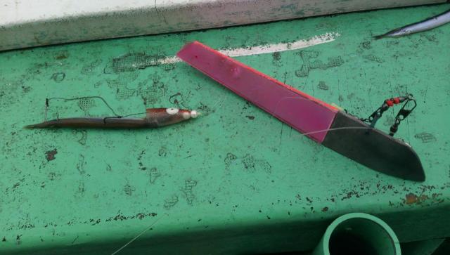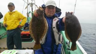 2014-10-04 (土) - 15:27 釣行メモ 釣行日 2014-10-03 場所 小樽 祝津沖~塩谷沖 魚種 ヒラメ 釣行種別 船釣り(Peace以外) この時期の私は、本来サケ釣りオンリーなのだが、 今シーズンはヒラメが絶好調! まだまだ続く釣行計画の合間を縫って、平日釣行!強行釣行! ヒラメ釣りで好調の、小樽遊漁船:武蔵 にて、AM 5:00 出航 天候的には、曇りのち雨の予報。 風は朝方に少し強く吹くが、9時位からは止んでしまうとのこと。 船が、風で流れなくなると釣果が落ちるので早めの勝負が肝心だ。 最初のポイントは、祝津沖 水深 25m 前後。 前日も、そこそこ釣れたそうなので、期待十分。 私の使用仕掛けは、 バケ:ホウムラ 『ケイムラ レーザーバケ ピンク:600g』 (仕掛け絡みがほとんどない、トリプルサルカン仕様) ハリス:ホウムラオリジナル仕掛け 1mタイプ 私の使用仕掛けは、 バケ:ホウムラ 『ケイムラ レーザーバケ ピンク:600g』 (仕掛け絡みがほとんどない、トリプルサルカン仕様) ハリス:ホウムラオリジナル仕掛け 1mタイプ 私の使用仕掛けは、 バケ:ホウムラ 『ケイムラ レーザーバケ オレンジ:600g』 (仕掛け絡みがほとんどない、トリプルサルカン仕様) ハリス:ホウムラオリジナル仕掛け 1mタイプ エサの『大女子』を付け、海底まで落とし、底から 2m上げてバケ振り開始。 最近は、エサ取りのフグが多く手こずると聞いていたが、 やはり最初は、フグの猛攻!! バケをおろしもたもたしているとすぐにエサをかじられてしまう。 やはり情報通りに、フグが針掛かりしてしまう始末だ。 先方変更。 本来なら、エサの泳ぎをよくするため、バケの動きに合わせ竿を上下に速すぎない程度に振るのだが、 フグからの攻撃を避けるため、着底後すぐに巻上げ、素早く小刻みに振るように心がけ、フグにかみつく時間を与えない船ぽいに変更。 すると、機敏なヒラメの食いつきがよくなり『ガン!』 重量感たっぷりのヒラメがヒット! この日は予報通り、風が落ち着いてしまうのが早く、船が投げれなくなると釣果はダウン! 潮も流れなく、ヒラメの食いはいまいち? しかし、『ケイムラ レーザー バケ』の効果か? ヒラメ 8枚 フクラギ 1匹 とりあえず、竿頭 となれました。 他の乗船者もヒット。 良型もヒット 今年はヒラメが好釣です。 まだまだ秋ヒラメが楽しめますよ。 小樽港:遊漁船【武蔵】http://www.fish-musashi.com/ 釣り人 yuusaku