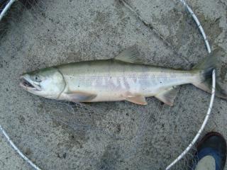 2014-10-08 (水) - 20:18 釣行メモ 釣行日 2014-10-08 場所 紋別ガリンコ停泊湾内 使用ホウムラ製品 エビちゃんシリーズ『"カット" えび粉赤エビ』 エビちゃんシリーズ『"カット" にんにく赤エビ』 サケ・カラフトマス専用ウキ 『キャストフロート:シリーズ』 魚種 サケ 釣行種別 サケ・カラフトマス 10.8(水) 3時半起床 目的地に向かう最中…『なんだ!!携帯が・・・なっている。』 釣り場所を確保したので・・・おいでのお誘い・・・。 甘んじて 釣り場所へ・・・。もうすでに 、 しかし 昨日は釣れたの話だけれども 今日は 鮭のハネが 無い!! しばらくして何とか2本ゲットするも 昨日とは全く違うとの事・・・。 釣とは こんなものです 釣れないのも釣!!7時に終了・・・ 『第2ラウンドに 劇的事態が!!!!!!』 1本目は緊張します!!これをばらすと不思議とバレ連続します!! どうしてなんでしょうね! 説明はいらないと思います・・・ 私は これが見える所で! 朝仕事を終え 10時過ぎ・・・ 昨日は 釣れたとの事・・・私は 用があって 紋別にいなかった!! 群れの遊泳は見えないものの 時々 鮭が 『もあっ!!』と一瞬でてきます 連続 4バラシ タモの用意をしてからのバレですから無駄な時間を 釣り仲にお願いして 『申し訳ありません!!』 しかし、 その後 ヒットを繰り返し 内 8本ゲット。 釣り場を少し移動して ・・・・・・ 鮭のハネ 発見!! こうなると・・・、遠投 これは 一投目からヒットの予感! 『アタリ!!』 2投目ヒット 3投目ヒット ここまでは全てゲット出来すぎ 4投目 ヒットするもバラシ!!・・・・・・・・******* 時間が無い 次の仕事までタイムリミット15分!! バラシ!! この場所4本目ゲット! 唾も出ない位疲れました!『でも楽しかったですね!』 終了12時半。 こんな場所で ・・・・。 餌 エビコ赤エビ・にんにく赤エビを使い果たして・・・。 2ラウンドは 黒エビで!! 釣り人 sasaki