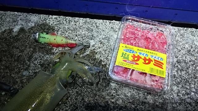 2019-04-20 (土) - 10:06 釣行メモ 釣行日 2019-04-18 場所 小樽港 使用ホウムラ製品 塩ササミ赤 風が弱く、海は凪。 ヤリイカ釣りにとっては条件が整った18日、夕方 6:30 現地着。 今回は、テーラー仕掛けを使って、ウキ釣りです。 磯竿を使用して、テーラーの重さは2号。 電気ウキも2号をセットして、今回のポイントではタナは1.2m 長い磯竿を利用して、30mほどキャスト。 テーラーに巻き付けたエサは、 ホウムラ【塩ササミ:赤】 http://shop.glotal.com/houmura/product/138 時間が経過して、ウキにわずかな変化が! 慎重に巻き寄せ、ゆっくりと抜き上げ、初ヤリイカをゲット! 活ヤリイカで食したかったので、バケツで墨を吐かせてから、エアポンプがセットされた、 ホウムラオリジナル【お魚活かしクーラー】でお持ち帰り http://shop.glotal.com/houmura/product/1113 。 初物は、活で! ビールが一段と美味しく感じました! 釣り人 yuusaku