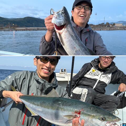 船を回して魚と勝負! 20分格闘してネットインはブリ!