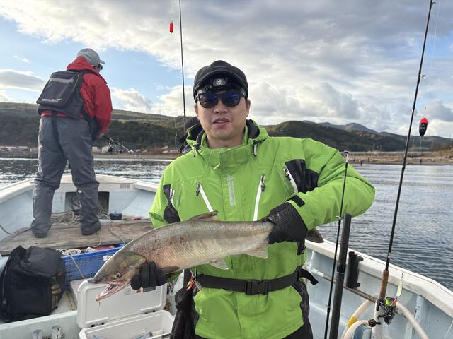 ◆10/7(火):古平川河口沖合に船を止め5名全員でウキルアーでサケ狙い