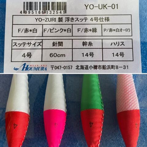 ホウムラ式:オリジナル 手作り【イカ】仕掛け積丹マイカにおすすめ べた底の昼イカを狙うなら最適 ★ヨーヅリスッテ UK-01:税込価格 2,780円 (写真左から①②)★ヨーヅリスッテ UK-02:税込価格 2,780円 (写真左から③④)★ヨーヅリスッテ UK-03:税込価格 2,780円 (写真左から⑤⑥)★ヨーヅリスッテ UK-04:税込価格 2,780円 (写真左から⑦⑧) 全タイプ共通 スッテサイズ:4号 針間隔:60cm 幹糸:14号 ハリス:14号 UK-01:カラー: F/赤白 F/ピンク白 F/赤緑 P/赤白オーロラ UK-02:カラー: F/赤白オーロラ F/赤緑 F/赤線 P/赤白オーロラ UK-03:カラー: F/赤白オーロラ F/ピンク緑 F/黄白 P/赤白オーロラ UK-04:カラー: F/赤白オーロラ F/赤緑 P/赤白オーロラ F/赤黄 特徴:針間隔を60cmにし4本針にすることにより、初心者でも扱いやすく、片手にも持ちやすく、投入の時にも針を指に刺すことが少なくなる。また、全長が3mと短くなることから、日中にベタ底に潜む昼イカの層をターゲットにできる。さらに、幹糸とハリスのナイロンラインを14号にすることにより、糸に張りが出て仕掛け絡みが激減します。お祭りの際にも、絡んだ仕掛けを外しやすくなり、お互い手返しが良くなり釣果の伸びにつながります。 価格 ¥2,780 イカ仕掛けカラー YO-ZURI タイプ:YO-UK-01 YO-ZURI タイプ:YO-UK-02 YO-ZURI タイプ:YO-UK-03 YO-ZURI タイプ:YO-UK-04 在庫数 14